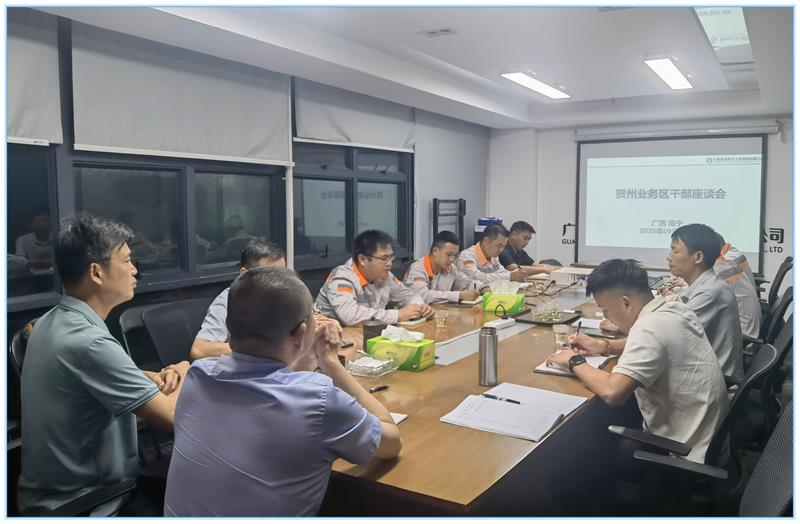 2025年9月19日,公司总经办精心组织并召开了贺州业务区干部及总监专题座谈会。公司总经办领导、安全生产管理部干部、贺州业务区干部及总监等参会。座谈会围绕2025年工作目标指标的推进、当前管理中存在的痛点和短板、执行力的有效强化以及团队建设的全面提升等核心议题。与会人员展开深入交流与探讨,为贺州业务区后续工作明确方向、统一思想、凝聚共识,为业务区完成年度工作任务奠定坚实基础。