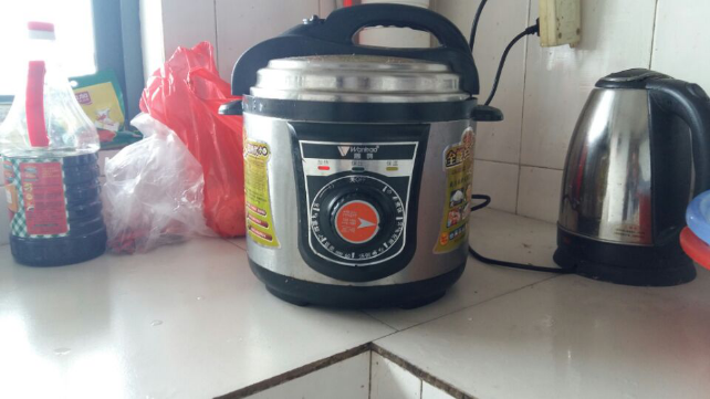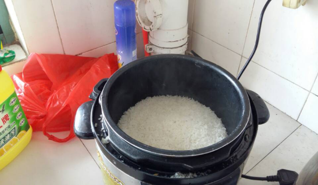 5、出炉。当选择烹饪时间按钮调为“关”后,可以排气打开锅盖。一锅香喷喷的米饭已煮好。
