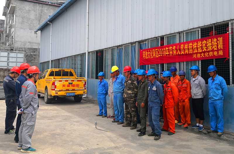 本次培训对2018年新进场劳务人员进行基建现场基本技能、常识进行培训宣贯及实操,旨在强化劳务人员安全意识,统一、规范现场安装工艺水平。逐步扭转一直以来农网项目点多面广、劳务队伍施工分散、安装工艺标准不统一导致的台区工艺多样化,无行之有效的样版工艺、样版台区局面,为河池大化网区台区建设打造优质工程项目储备基础劳务人才,着力打造优质台区项目。