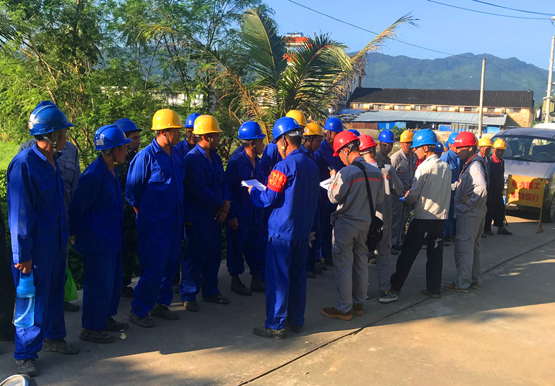 喜庆祥和的国庆节刚刚过去,又到2018年10月12日这个特别的日子,因为今天是公司监理的海南保亭2018年第一批中央农网投资项目改造工程停电施工任务最为繁重的一天。项目总监理工程师黄盛及保亭监理项目部监理人员于7点30分准时到达停电施工现场,立即开展项目停电前监理检查工作。
