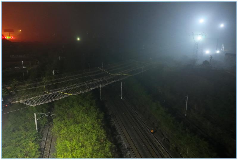 跨铁攻坚,利华~歌标220kV线路跨铁路段悬索封网顺利完成